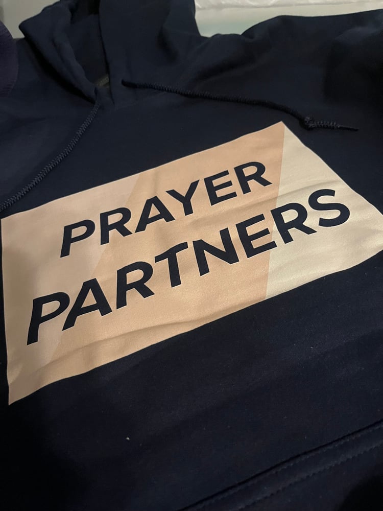 Prayer Partners Hoodie - Navy Blue - Cream logo